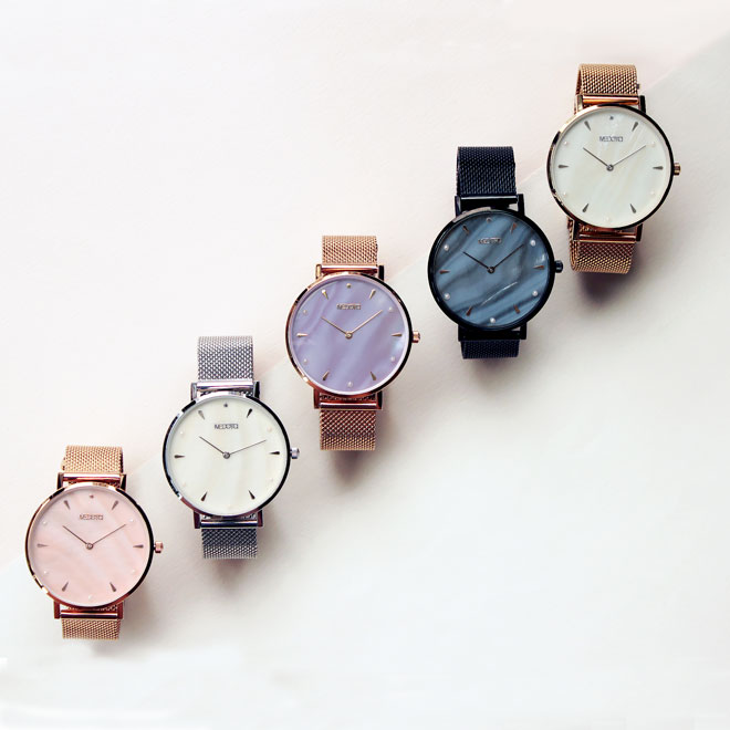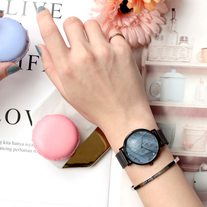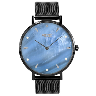 Design ideal of THETIS collection is from the ocean, the surface is made from shell and used beautiful pearl embellish watch. Case and strap is stainless steel.