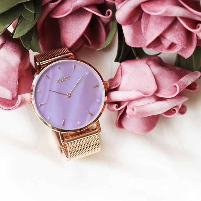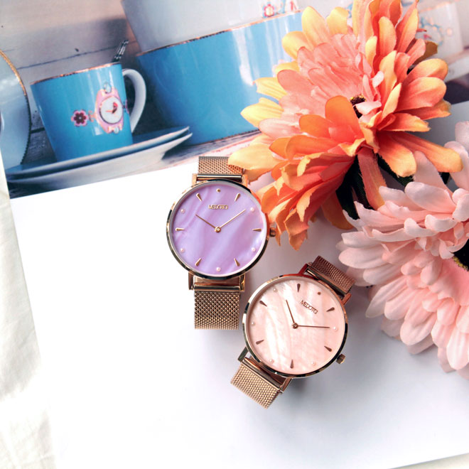 Design ideal of THETIS collection is from the ocean, the surface is made from shell and used beautiful pearl embellish watch. Case and strap is stainless steel.