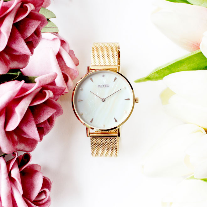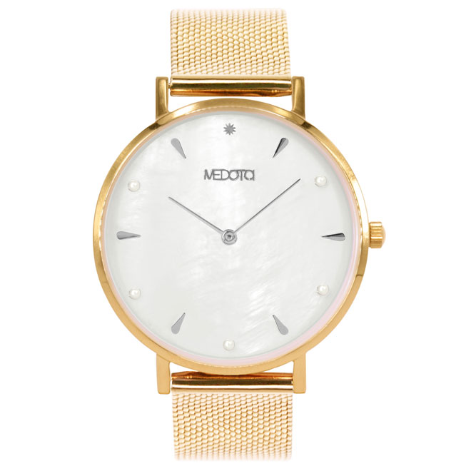 Design ideal of THETIS collection is from the ocean, the surface is made from shell and used beautiful pearl embellish watch. Case and strap is stainless steel.