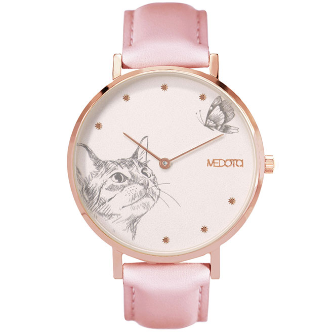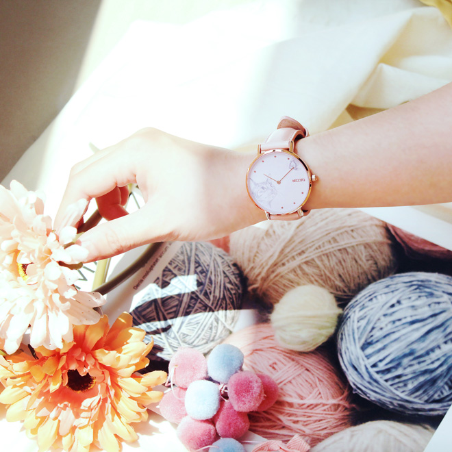 LOVE collection use hand drawing art to be theme, with delicate small dial and pink leather strap.