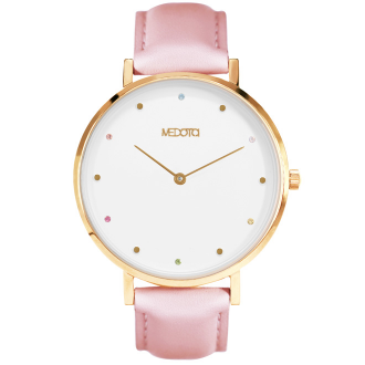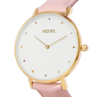 RAINBOW collection used diamond from Czech, the circle diamonds is lovely embellish on white surface with pink strap, show the style of cute ladies.
