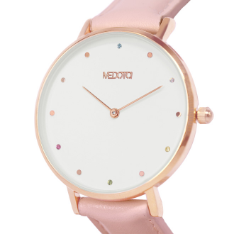 RAINBOW collection used diamond from Czech, the circle diamonds is lovely embellish on white surface with pink strap, show the style of cute ladies.