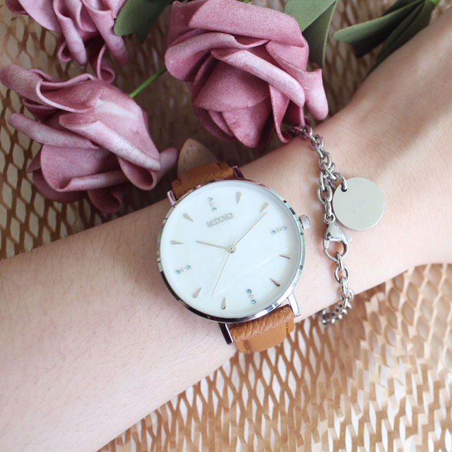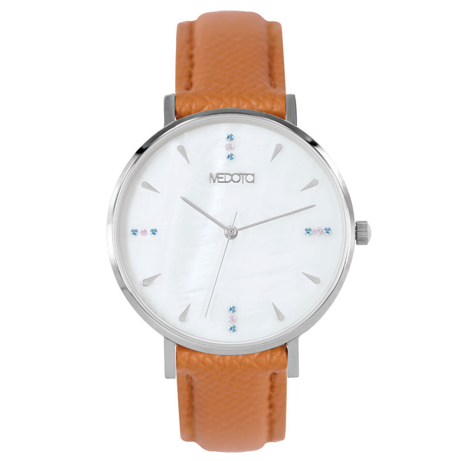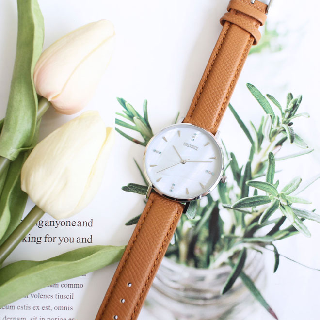 GLITTER collection surface is made from shell and diamond, the strap used leather strap that looks wonderful and stylish.