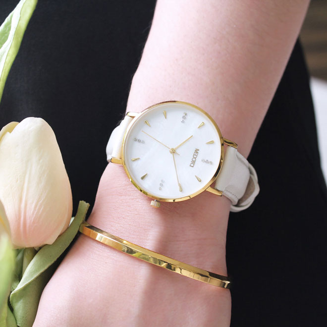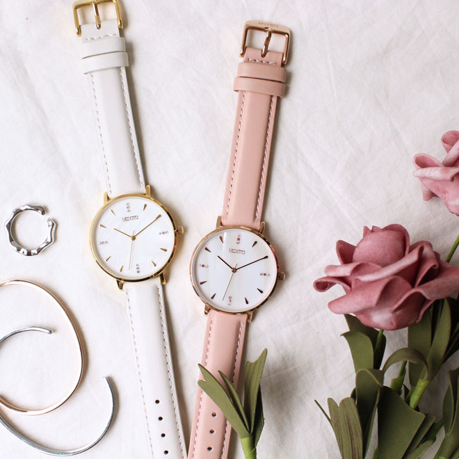 GLITTER collection surface is made from shell and diamond, the strap used leather strap that looks wonderful and stylish.