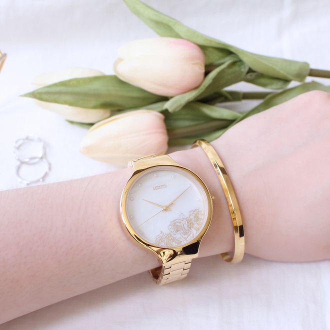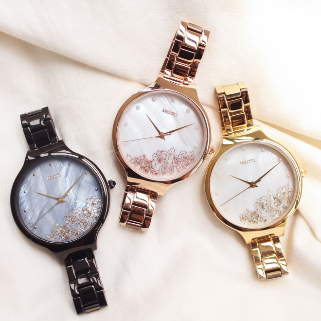 Exquisite rose carving, pure pearl time mark, romantic shell dial