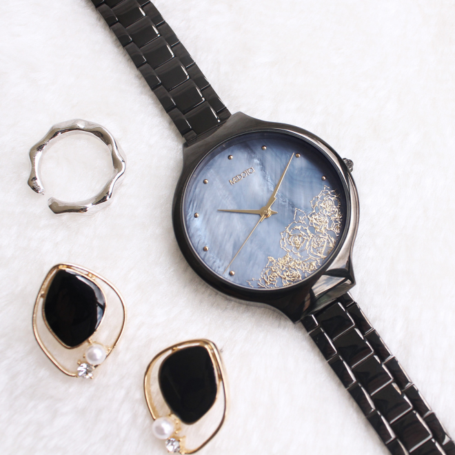 Exquisite rose carving, pure pearl time mark, romantic shell dial